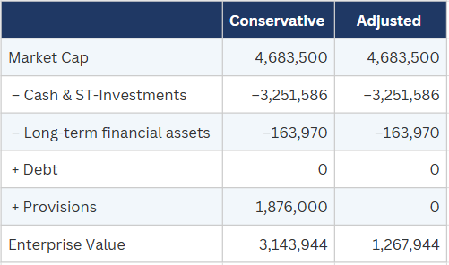 Enterprise value depends on how you treat the provisions.