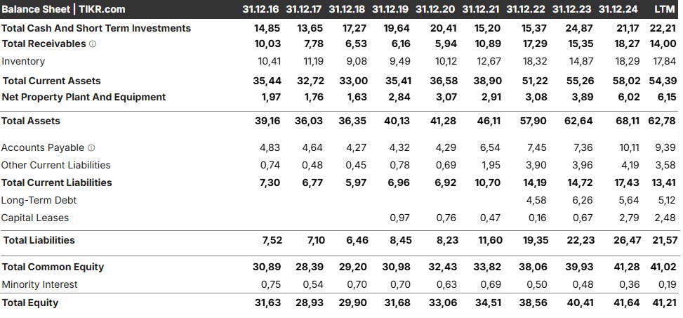 And the cash pile is not a new development. It has been large for over a decade. It grows, more or less steadily, but most of the time it just sits there on the balance sheet. It earns money-market yields and generates roughly €1 million per year in net interest and investment income, which flatters reported earnings. But it has not been returned to shareholders in any meaningful way.