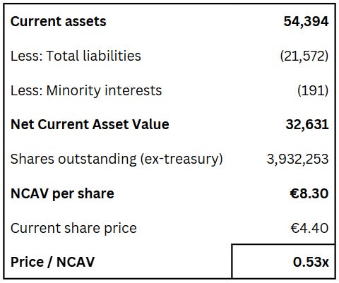 At 53% of net current asset value and 1.4x EV/EBIT, it is not hard to see why.