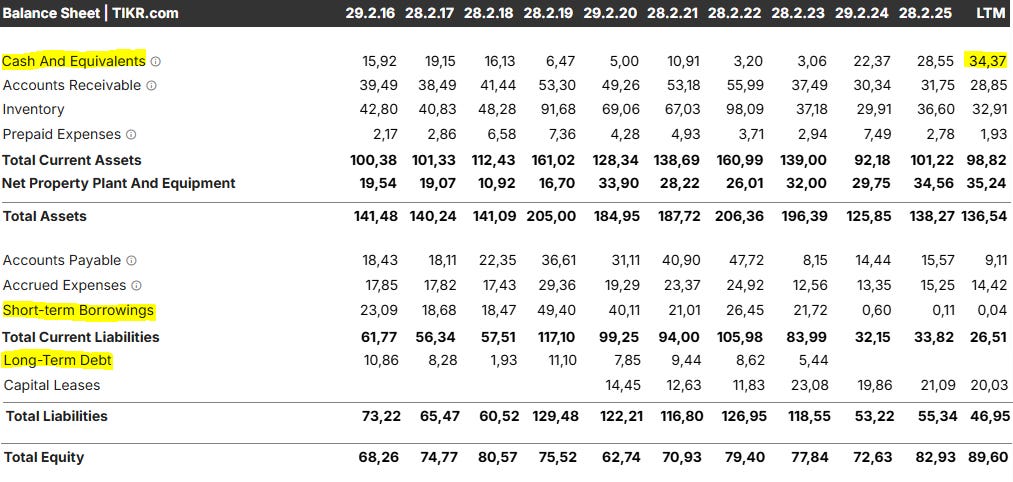 Through these sales, both profitability and the balance sheet have improved significantly. The company is now clearly overcapitalized and is returning excess cash to shareholders through dividends and buybacks.