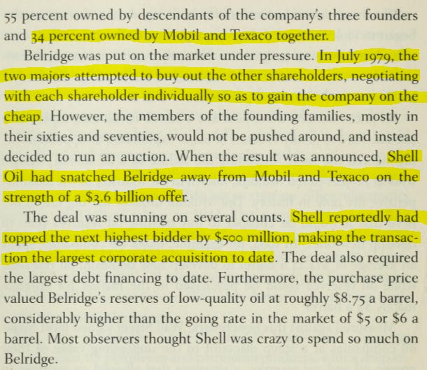 So they put Belridge up for auction, which started a full-on bidding war among the biggest oil companies in America.