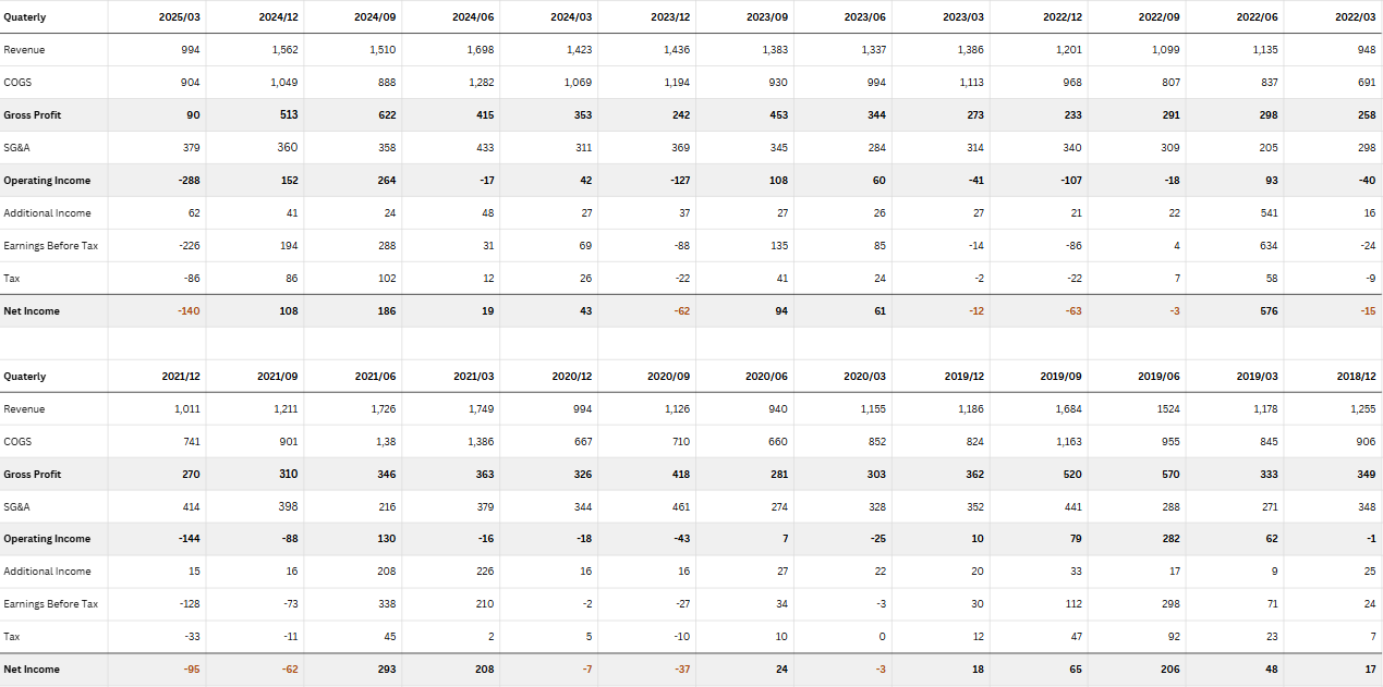 And again, this isn’t new. Since they started filing again, 11 quarters have shown a net loss, and I’d bet the pattern goes back even further.
