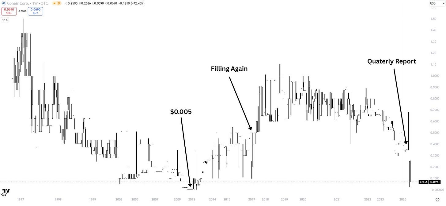 CNGA stayed in the dark for 22 years until, in September 2017, they suddenly filed quarterlies and an annual report. Since then, they’ve kept up with filings and even put out press releases! For a company that had been silent for decades, that’s a pretty big shift.