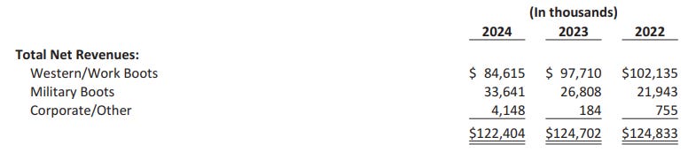 As mentioned earlier, part of McRae’s business is manufacturing military boots and selling them to the U.S. government. It’s not their biggest segment and historically hasn’t been the main earnings driver. Still, it’s far from irrelevant.