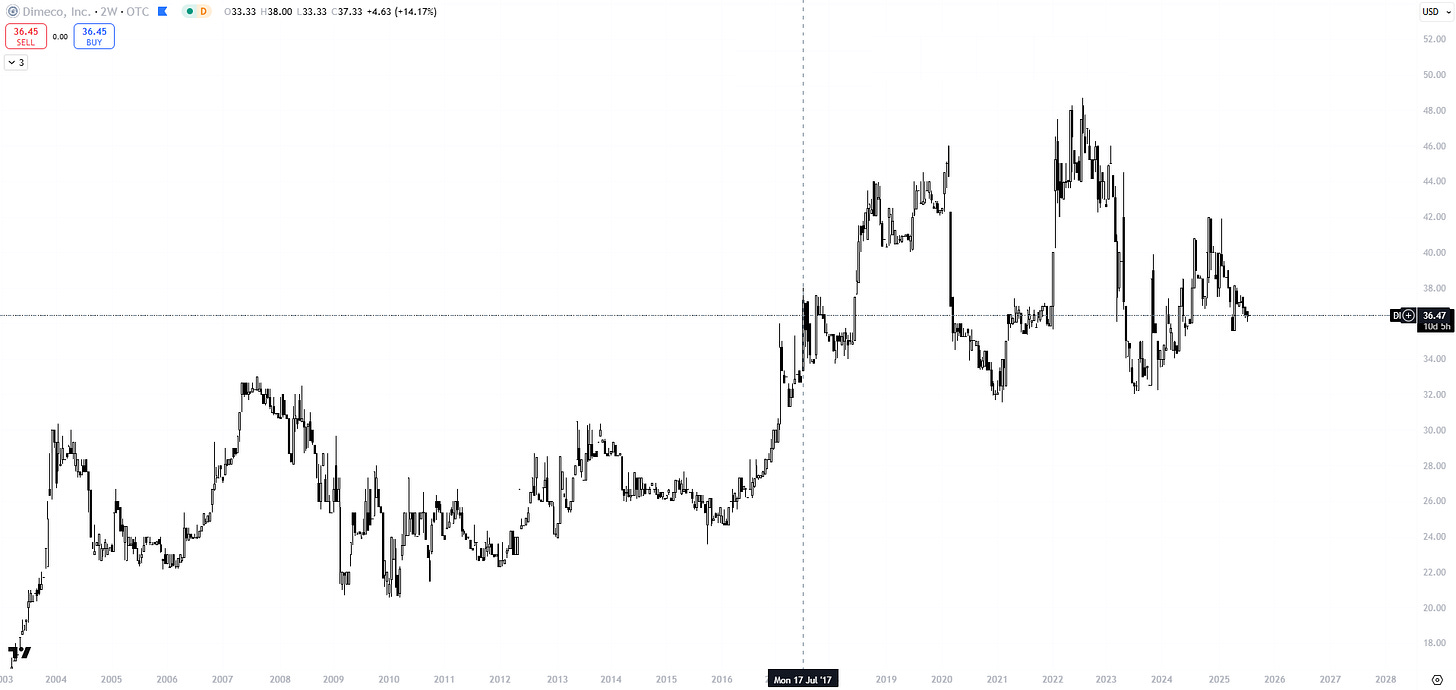 The business is called Dimeco, Inc. ($DIMC), or, as their website puts it, simply “The Dime Bank.”