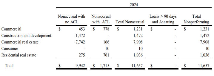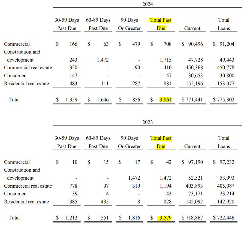 “In 2024, the ACL for loans increased by $317 thousand due to an overall increase in the loan portfolio and a slight increase in the historical loss rate.“