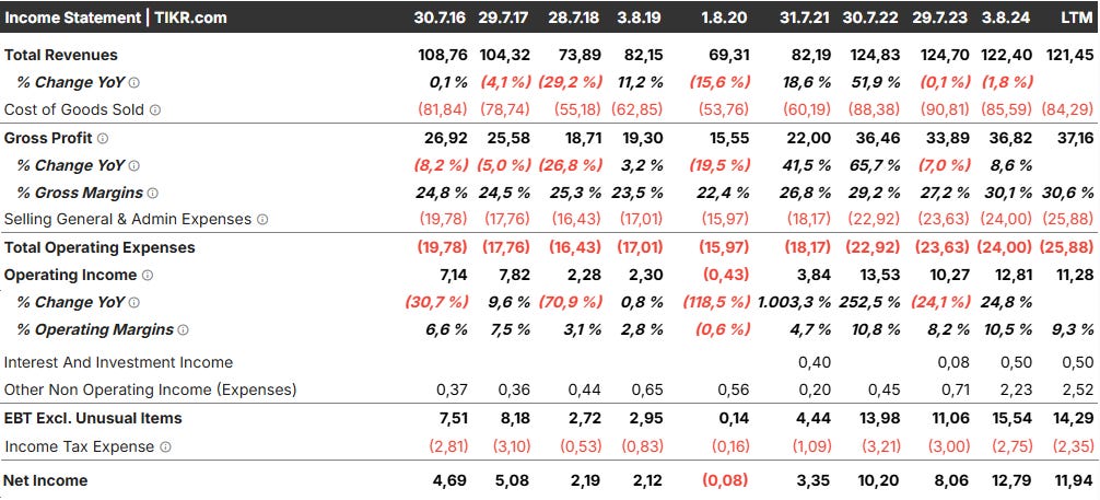 Gross margins have been slowly but consistently improving. Same goes for operating margins, although those, too, have stagnated a bit since 2022.